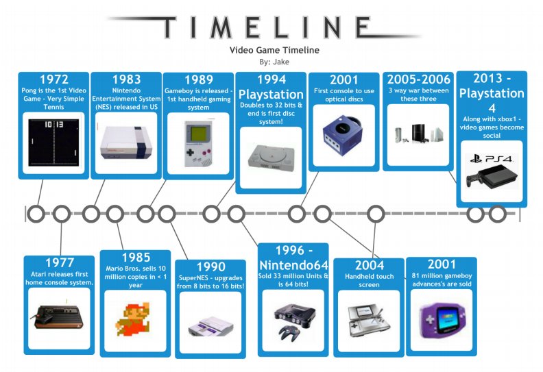 A timeline of key points in video games, with particular interest in the consoles that the games run on.
